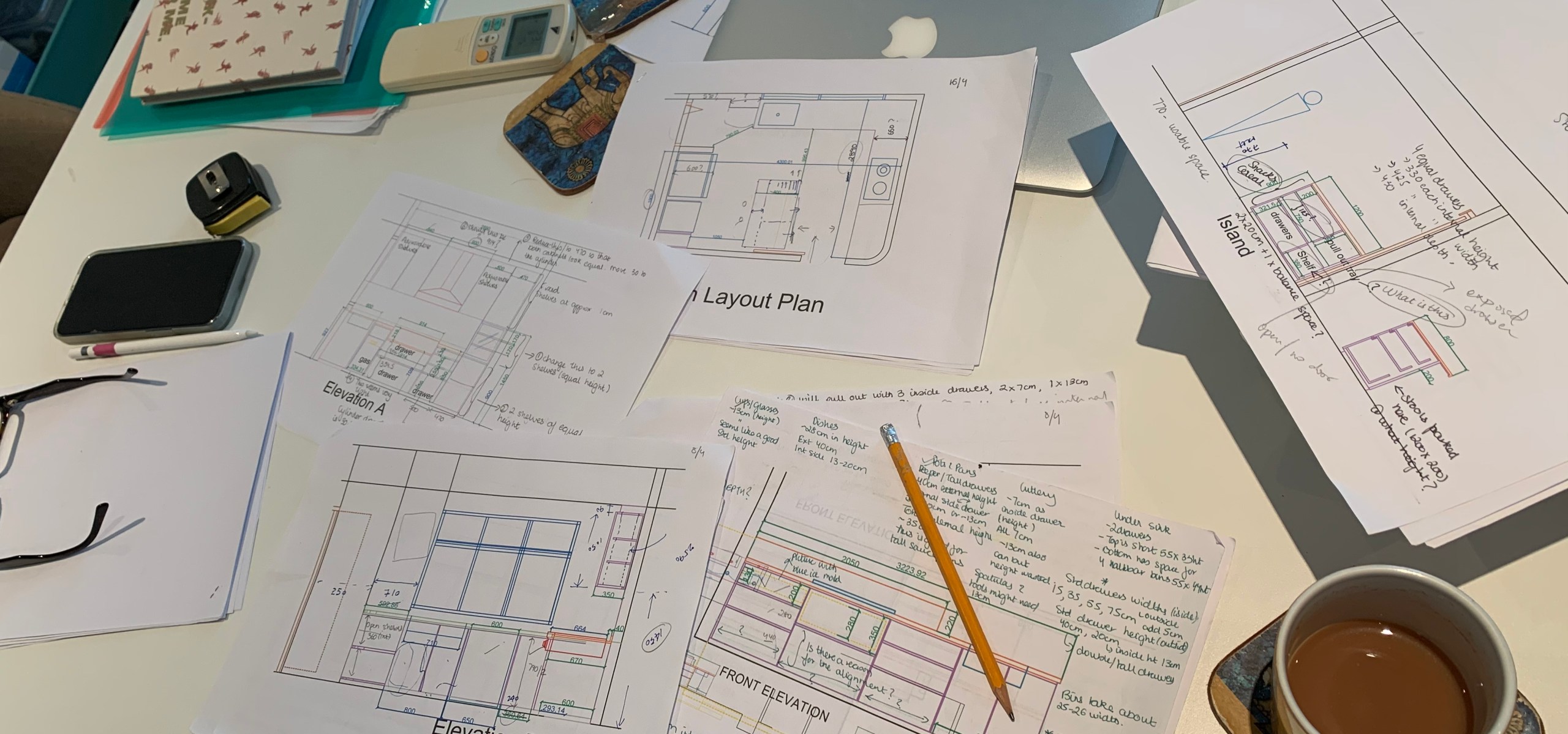 After years of making-do with sloppy kitchen design I have the opportunity to create something that meets my needs. My goal is an efficient kitchen that is lovely to behold and a pleasure to work in. The space is planned and organised; there is a place for everything so that everything can stay in place, avoiding clutter and waste.